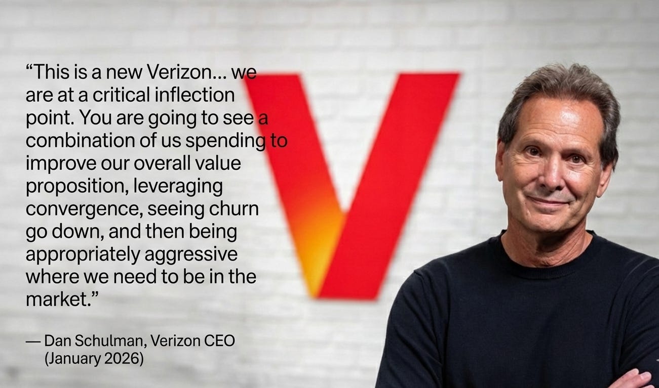 Verizon made the biggest move. It spent $20 billion to buy Frontier Communications, doubling its fiber footprint to 30 million homes. The goal is convergence. A household on Verizon fiber and mobile is twice as sticky. Internal churn drops by 50% on mobile, 40% on fixed. That translates into lower SAC, higher LTV, and fewer promo cycles. The company expects $500 million in annual operational synergies from integration alone by 2029.